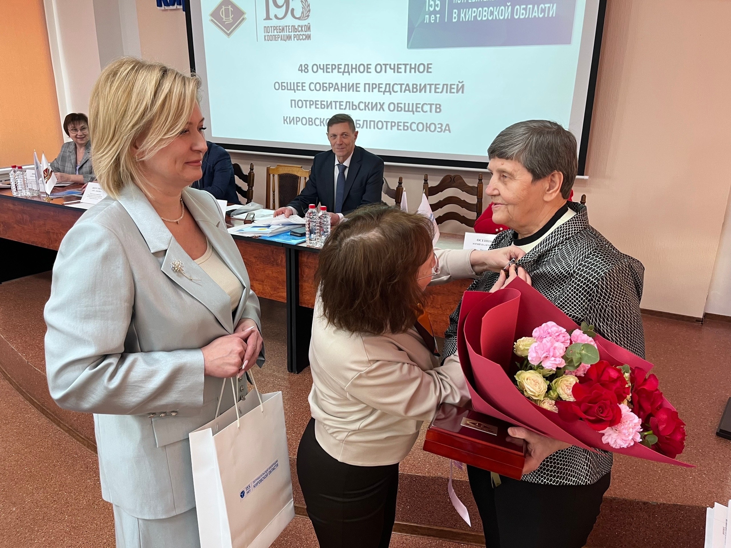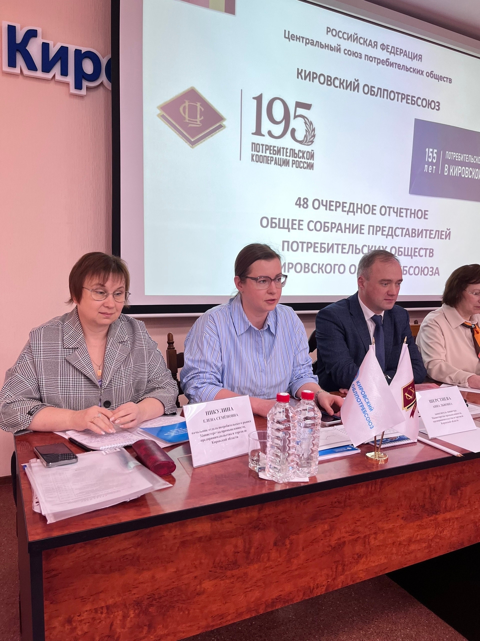 В работе собрания приняли участие почетные гости: заместитель председателя Законодательного собрания Кировской области Алексей Потапенко, заместитель министра промышленности, предпринимательства и торговли региона Анна Шерстнева, начальник отдела потребительского рынка областного минпрома Елена Никулина, а также директор Центра информации и коммуникаций Центросоюза РФ Галина Лашманова.